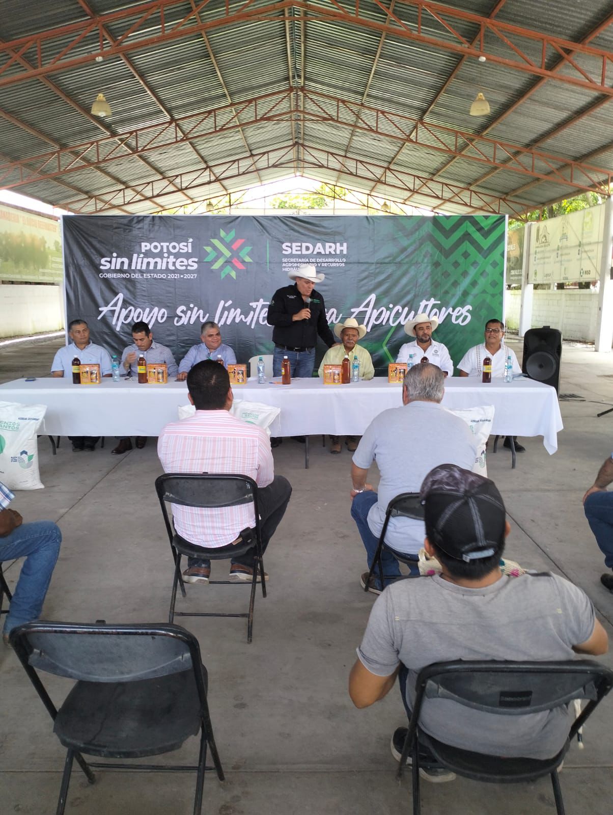 La Secretaría de Desarrollo Agropecuario y Recursos Hidráulicos (Sedarh), entregó en la región Huasteca ocho toneladas del endulzante natural para abejas de miel (apis mellifera),