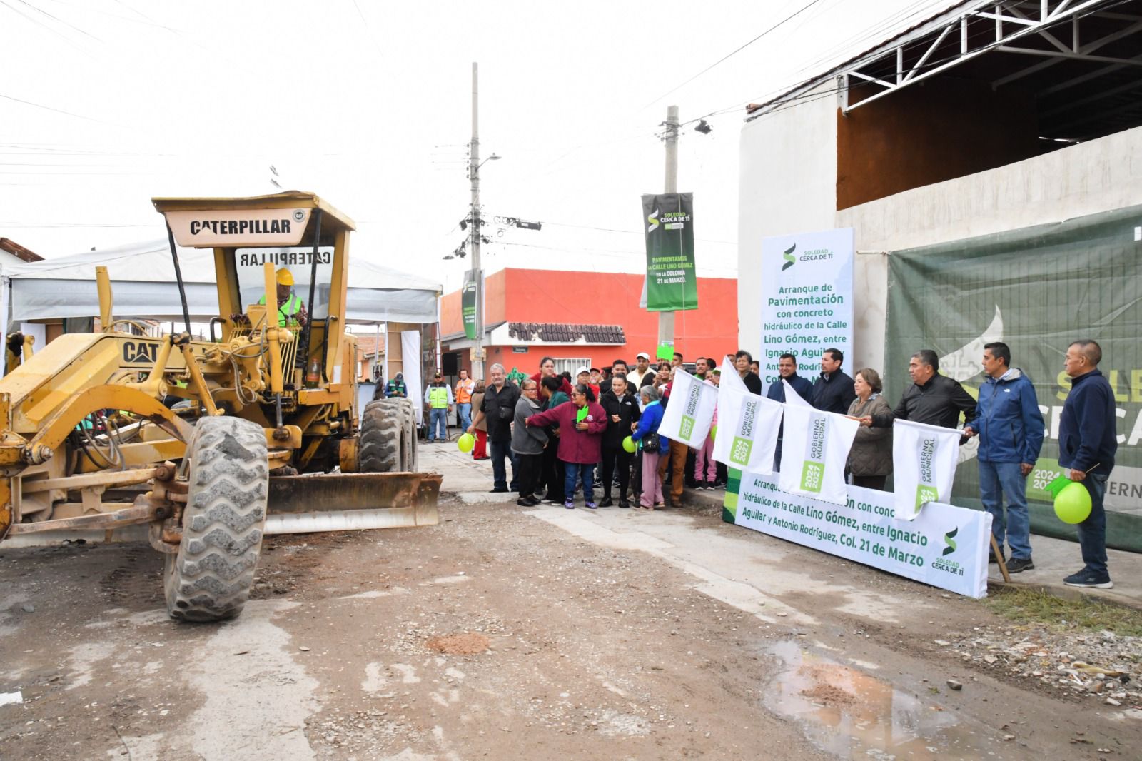 Juan Manuel Navarro Muñiz, Alcalde de Soledad de Graciano Sánchez, dio arranque a la pavimentación con concreto hidráulico de la calle Lino Gómez, en el