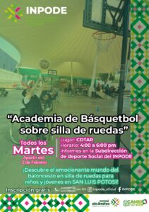 Con el respaldo sin límites del Gobernador del Estado, Ricardo Gallardo Cardona, el Instituto Potosino de Cultura Física y Deporte (Inpode) fortalece el deporte adaptado con la apertura de la Academia de Básquetbol en Silla de Ruedas, como parte del cambio que hoy se vive y se siente en San Luis Potosí.