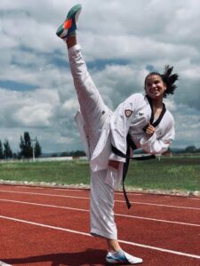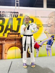 El Gobierno del Estado de San Luis Potosí a través del Sistema Educativo Estatal Regular (SEER) celebra el triunfo de Sharon Michelle Jara Acosta, estudiante de la licenciatura en Educación Física e integrante del Selectivo de Tae Kwon Do de la Benemérita y Centenaria Escuela Normal del Estado (Becene), quien se colgó la Medalla de Oro en la categoría Adultos del “Abierto del Bajío” en León, Guanajuato.