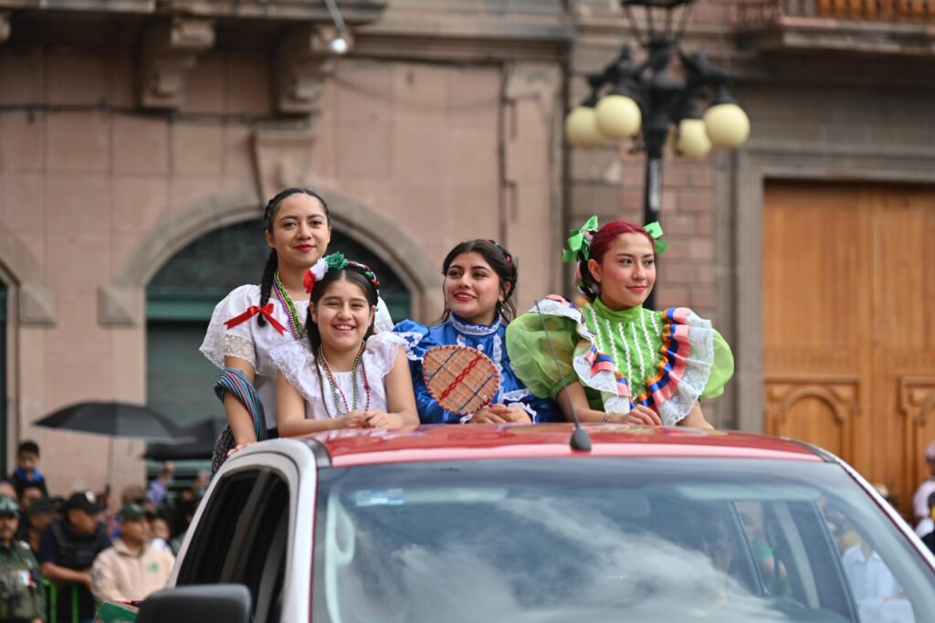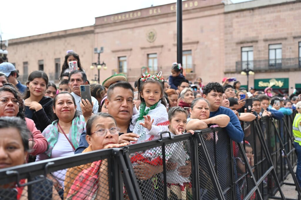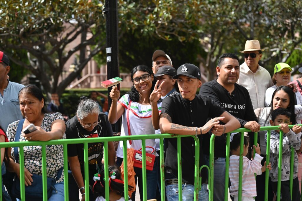 El desfile contó con la participación de las Fuerzas Armadas del Ejército, así como de la Guardia Civil Estatal, cuerpos de auxilio, instituciones educativas, trabajadores del Gobierno estatal, asociaciones de charros y civiles, quienes desfilaron entre aplausos y muestras de orgullo de las familias reunidas. Las y los asistentes destacaron la organización del evento y expresaron su reconocimiento a los contingentes por su disciplina, compromiso y entrega al servicio de la sociedad.