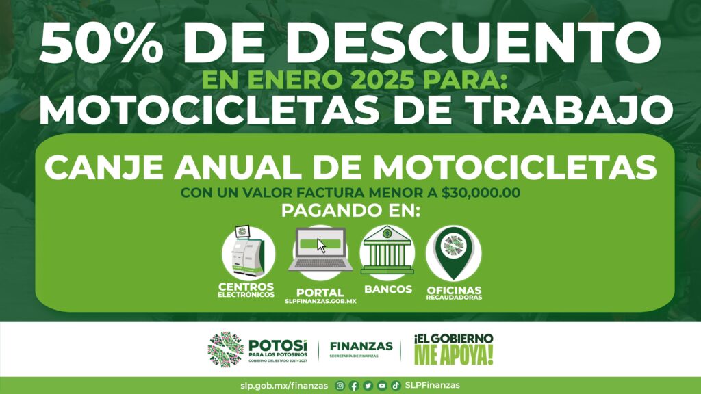 El Gobierno del Estado, reitera su compromiso con los sectores más vulnerables, por lo que implementa un subsidio del 50 por ciento en el canje anual, durante el ejercicio fiscal 2025, para las personas adultas mayores y a las y los propietarios de motocicletas con valor de hasta 30 mil pesos y cilindraje igual o menor a 300 centímetros cúbicos (CC).