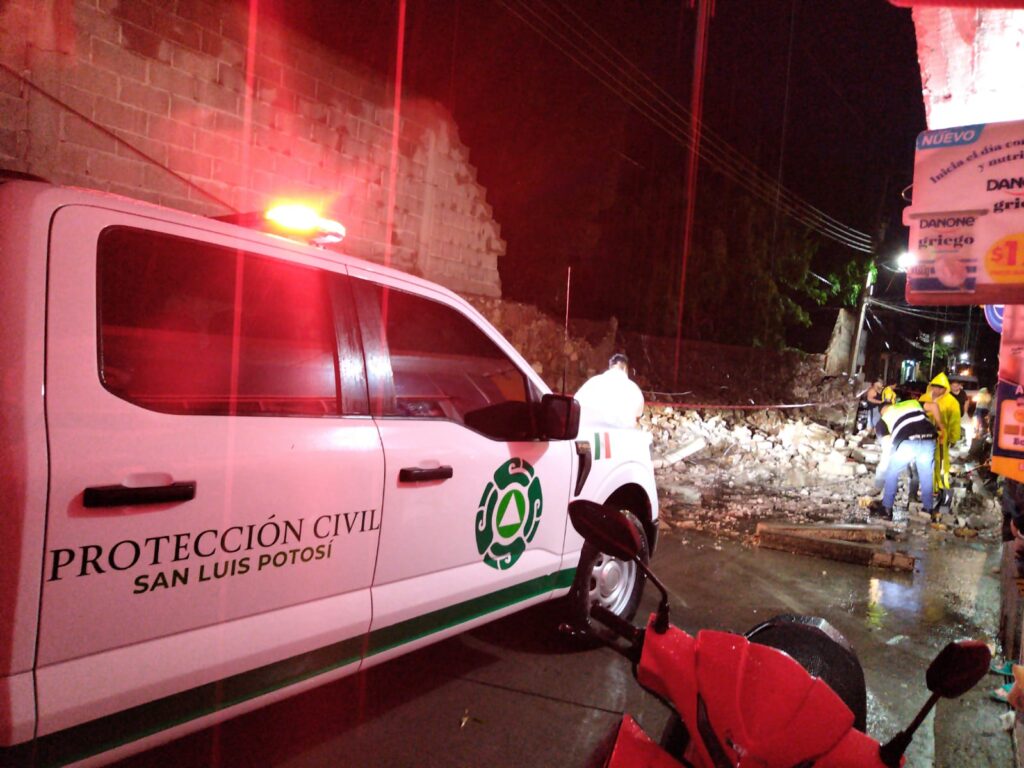 De igual manera se atendió el desbordamiento de una barda en el municipio de Santa María del Río donde también se registraron fuertes lluvias.