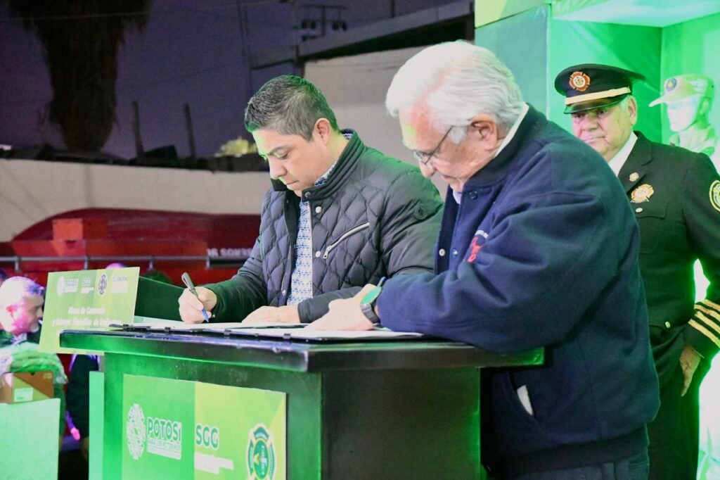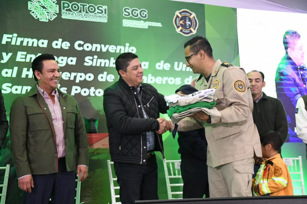 En apoyo a las y los potosinos que forma parte del H. Cuerpo de Bomberos Voluntarios de San Luis Potosí, este jueves el Gobernador del Estado, Ricardo Gallardo Cardona, formalizó el convenio para respaldar a integrantes de este grupo de auxilio y sus familiares, en caso de afectaciones graves en el cumplimiento de su servicio que desarrollen en el territorio del Estado, además de entregar uniformes completos para dignificar su trabajo y brindarles protección ante cualquier eventualidad.