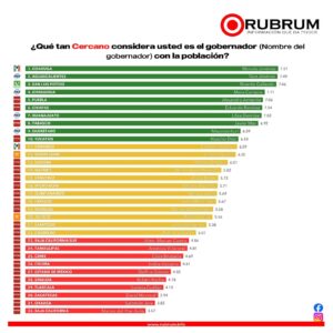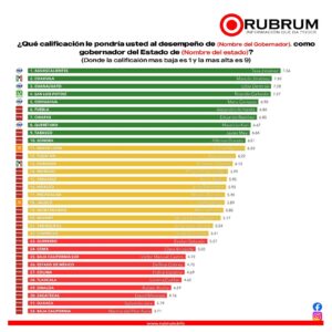 En términos de desempeño general, el mandatario se ubicó en el cuarto lugar nacional con una calificación de 7.27, manteniendo una tendencia positiva frente a sus homólogos de otras entidades.