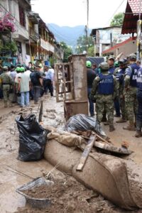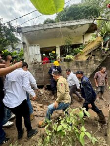 Tras instruir mantener un operativo permanente de ayuda en los municipios afectados, Ricardo Gallardo visitó el barrio El Carmen y la colonia La Estrella, acompañado por autoridades municipales, estatales y personal de la Secretaría de la Marina y el Ejército Mexicano quienes implementan el Plan DN-III-E en coordinación con Protección Civil Estatal, en estas zonas, donde el nivel del lodo superó los 30 centímetros por lo que se realizan labores de retiro de escombros, saneamiento y desinfección