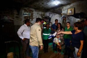 Continuando con la intensa gira de trabajo por al Huasteca potosina, el Gobernador de San Luis Potosí Ricardo Gallardo Cardona, recorrió las colonias y barrios en Tamazunchale afectados por la creciente del río, dónde entregó el programa alimentario, paquetes de limpieza y desinfección, así como enseres domésticos como colchones, estufas, colchonetas, cobijas, ollas para cocina, parrillas, además de supervisar los trabajos de limpieza acompañando y ayudando a las familias.