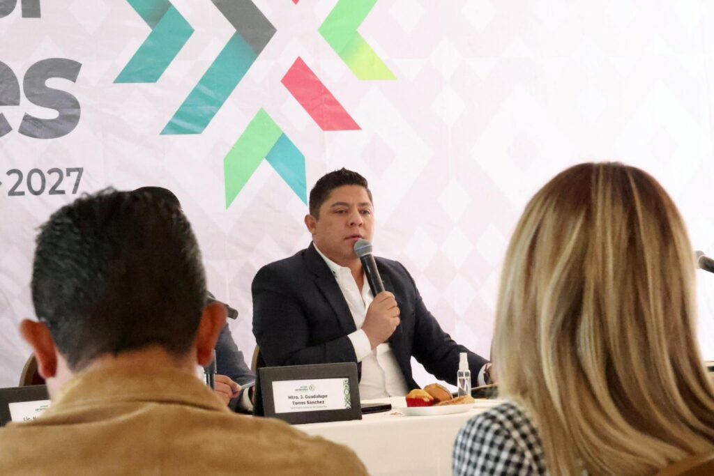 El Gobernador del Estado, Ricardo Gallardo Cardona, encabezó este día una reunión con el gabinete legal y ampliado en la que exhortó a las y los funcionarios estatales a fortalecer el ritmo de trabajo y continuar con el proceso de cambios positivos a favor del desarrollo de las cuatro regiones de San Luis Potosí.