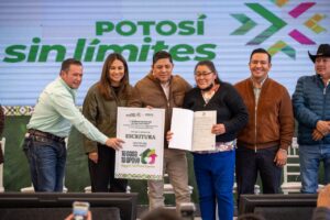 En medio de un ambiente de fiesta y agradecimiento ciudadano, Ricardo Gallardo escuchó las necesidades de la población y además entregó escrituras del programa de regularización de asentamientos humanos del Instituto de Regularización y Vivienda Social (Inrevis) a familias de las colonias El Real y Fraccionamiento Antorchista, que les brindan seguridad patrimonial después de décadas de vivir en condiciones irregulares.