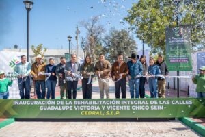 En una intensa gira de trabajo por Cedral, el Gobernador de San Luis Potosí Ricardo Gallardo Cardona, cortó el listón inaugural de las nuevas calles Guadalupe Victoria y Vicente Chico Seín, entregó escrituras a familias e inició los trabajos de mejora del mercado municipal, con una intervención integral en el corazón de la cabecera municipal.