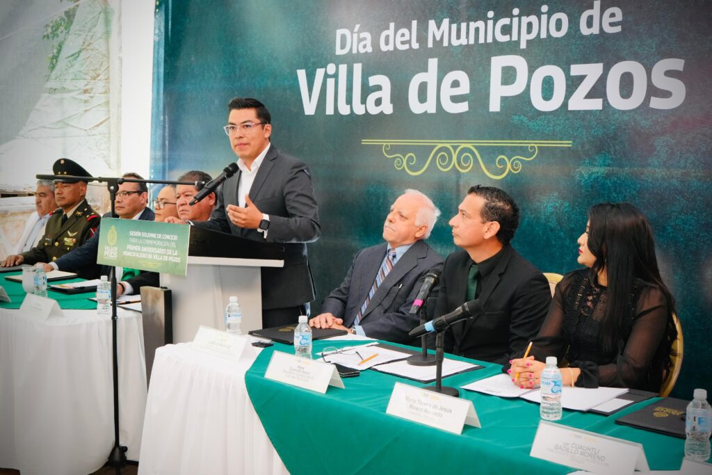 Asimismo, destacó que hace un año Villa de Pozos alcanzó su independencia como el municipio número 59 del estado, logrando con ello libertad administrativa y mayores garantías para su desarrollo y representó un paso histórico para sus habitantes, quienes durante años alzaron la voz en busca de justicia y autonomía.