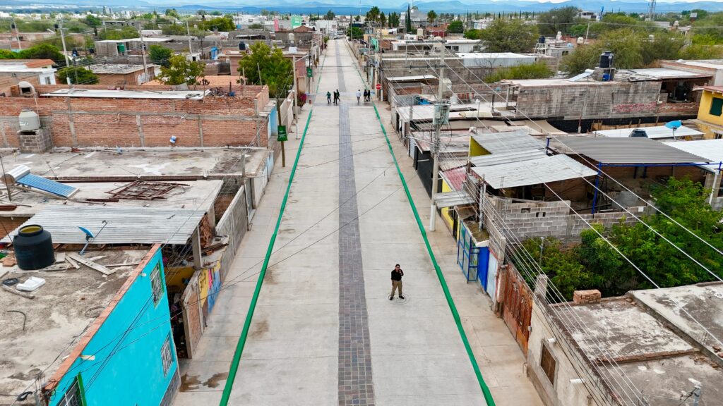 Con una inversión superior a 4 millones de pesos, se rehabilitaron más de 3,400 metros cuadrados de pavimento y banquetas y se construyeron más de 2,400 metros cuadrados de arroyo vehicular con concreto hidráulico acabado en piedra piñón. Además, se realizaron trabajos de drenaje, instalación de señalamiento vial horizontal y vertical, así como la modernización del sistema de alumbrado público, lo que refuerza el compromiso del Gobierno Municipal de Villa de Pozos con la mejora de su infraestructura urbana.