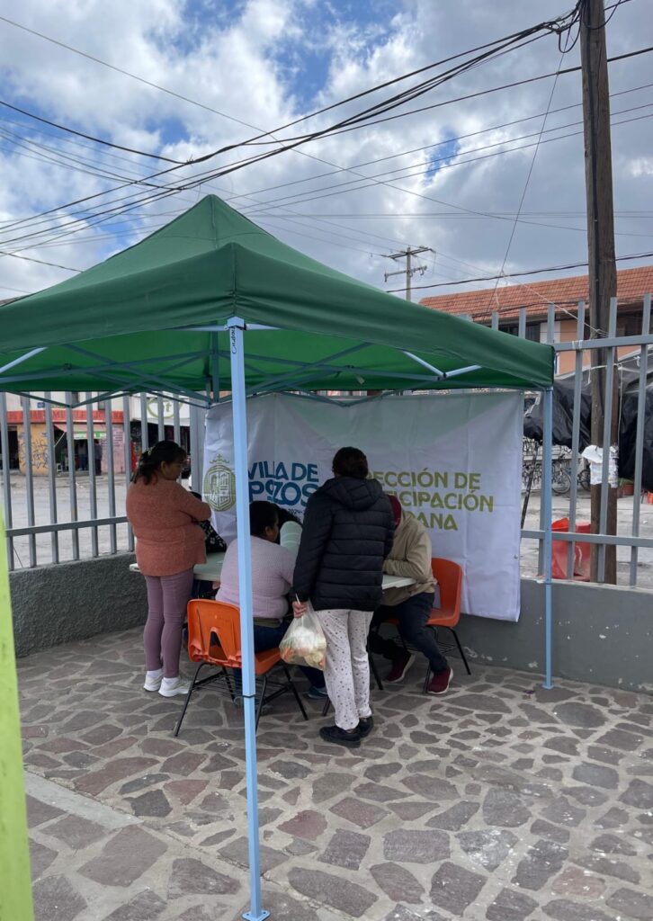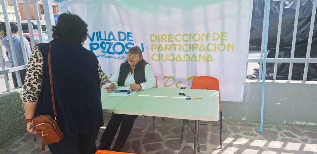 El Concejo Municipal de Villa de Pozos, a través de la Dirección de Participación Ciudadana, implementó un módulo de atención en la Unidad Deportiva de Prados de San Vicente, 2da sección, con el objetivo de escuchar las necesidades de los ciudadanos de las colonias y cuarteles aledaños, para canalizar sus peticiones a las áreas correspondientes, asi como facilitar la comunicación directa entre los habitantes y el gobierno y promover una atención más eficiente y personalizada.