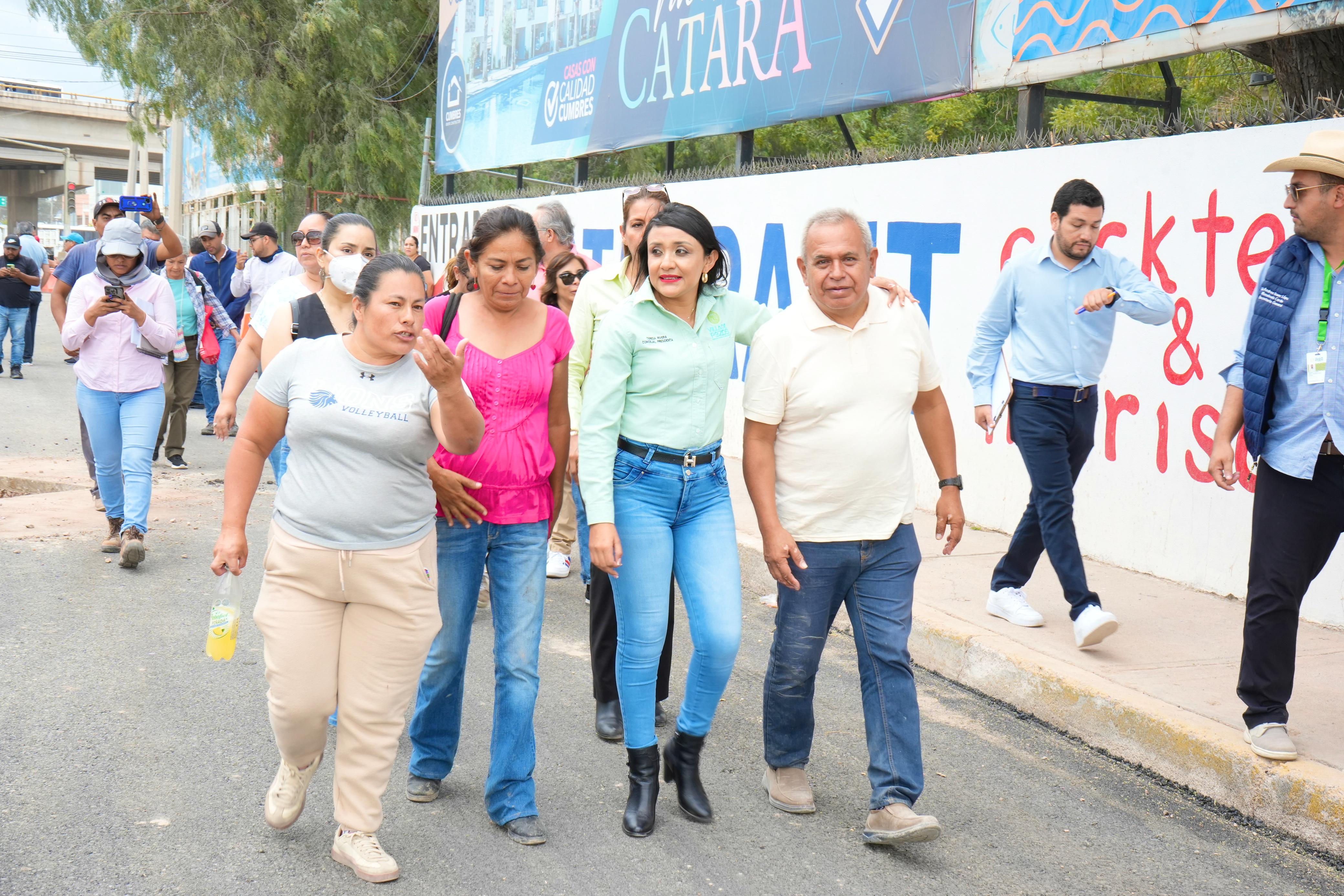 La Presidenta Concejal Teresa Rivera Acevedo, quien encabeza el Gobierno Municipal de Villa de Pozos, realizó un recorrido con vecinas y vecinos de Bosques de las Flores para supervisar los avances de la obra de rehabilitación que se lleva a cabo en la zona y sostuvo una reunión con comerciantes con el objetivo de escuchar de manera directa sus inquietudes y atender sus necesidades.