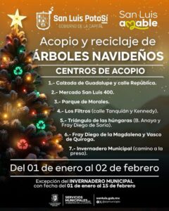 Con el fin de mantener limpia la ciudad, promover el cuidado del medio ambiente y darle un uso sustentable a los árboles navideños naturales, el Gobierno Municipal puso en servicio 7 centros de acopio ubicados en diversos puntos, donde serán convertidos en composta para el mantenimiento de áreas verdes.