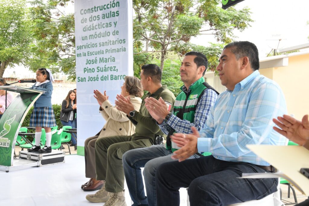 Juan Manuel Navarro Muñiz, Alcalde de Soledad de Graciano Sánchez, encabezó el arranque de una nueva obra de infraestructura educativa en la escuela primaria “José María Pino Suárez”, ubicada en la comunidad de San José del Barro, institución que este 9 de septiembre celebra su 84 aniversario de fundación; con una inversión municipal se construirán dos aulas didácticas, un módulo de servicios sanitarios y obras complementarias que beneficiarán a 120 alumnos de la institución, cumpliendo así con la encomienda de fortalecer la infraestructura educativa y acercar más beneficios a las familias soledenses.
