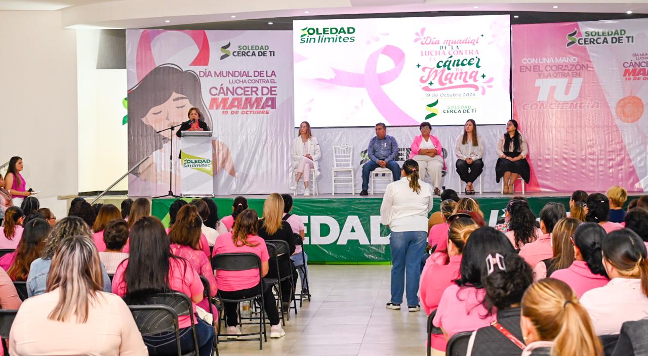 El Alcalde de Soledad de Graciano Sánchez, Juan Manuel Navarro Muñiz dio comienzo al Foro Rosa “Con una mano en tu corazón y otra en tu conciencia”, en el marco de la conmemoración del Día Internacional de la Lucha contra el Cáncer de Mama, con la finalidad de fomentar la prevención y generar conciencia entre las mujeres sobre la importancia de la detección oportuna, realizado en el Auditorio Municipal, un espacio que reunió a servidoras públicas y sus familias para conocer más de esta enfermedad y las estrategias efectivas para combatirla.