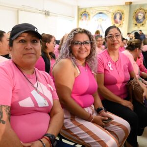 Por su parte, María del Pilar Cardona Reyna, Presidenta del Sistema Municipal para el Desarrollo Integral de la Familia (DIF), subrayó que el 19 de octubre, Día Internacional de la Lucha contra el Cáncer de Mama, representa un llamado mundial a la acción y al autocuidado; enfatizó la relevancia de la autoexploración mensual desde los 20 años, la exploración clínica anual a partir de los 25 y la mastografía anual desde los 40, prácticas fundamentales para detectar a tiempo cualquier anomalía.