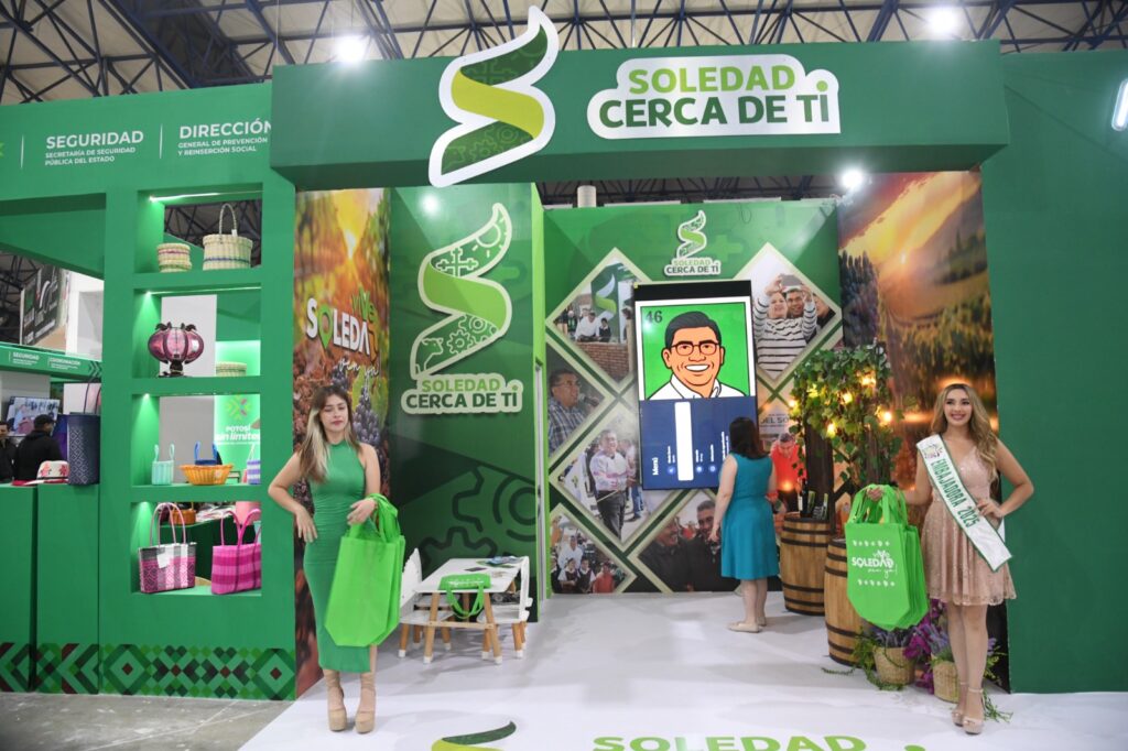 Ubicado en el Pabellón 1 del recinto ferial, el pabellón ofrece una experiencia integral para las y los visitantes: información sobre movilidad y Policía Vial enfocada en la prevención y atención de la violencia de género, souvenirs representativos, datos sobre uno de los viñedos del municipio, un set fotográfico temático, y la atractiva Lotería Turística de Soledad; además, se proyecta un video promocional que muestra los paisajes, sabores y tradiciones que distinguen al municipio.
