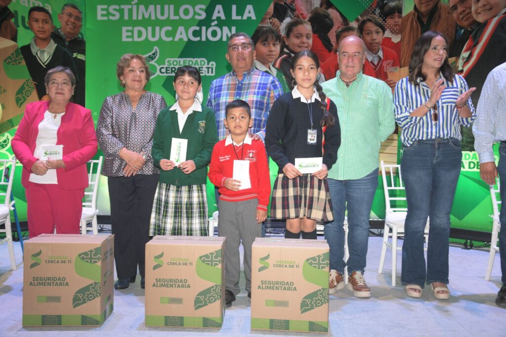Para motivar y reconocer el esfuerzo académico de cientos de niñas y niños de nivel básico, el Alcalde de Soledad de Graciano Sánchez, Juan Manuel Navarro Muñiz realizó la segunda entrega del programa “Estímulos a la Educación”, dirigido a estudiantes con promedio mínimo de 8.5, y con el que las y los beneficiarios reciben un apoyo bimestral de mil 500 pesos en efectivo, así como una despensa, que reafirman el compromiso del Gobierno Municipal con la formación de la niñez soledense.