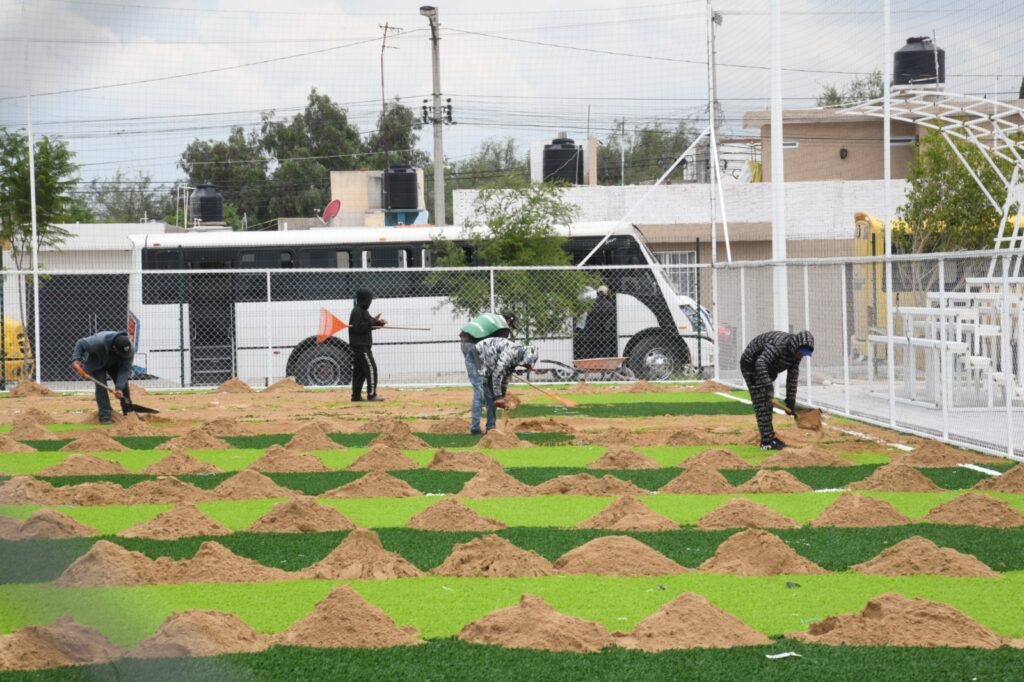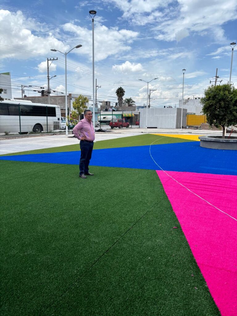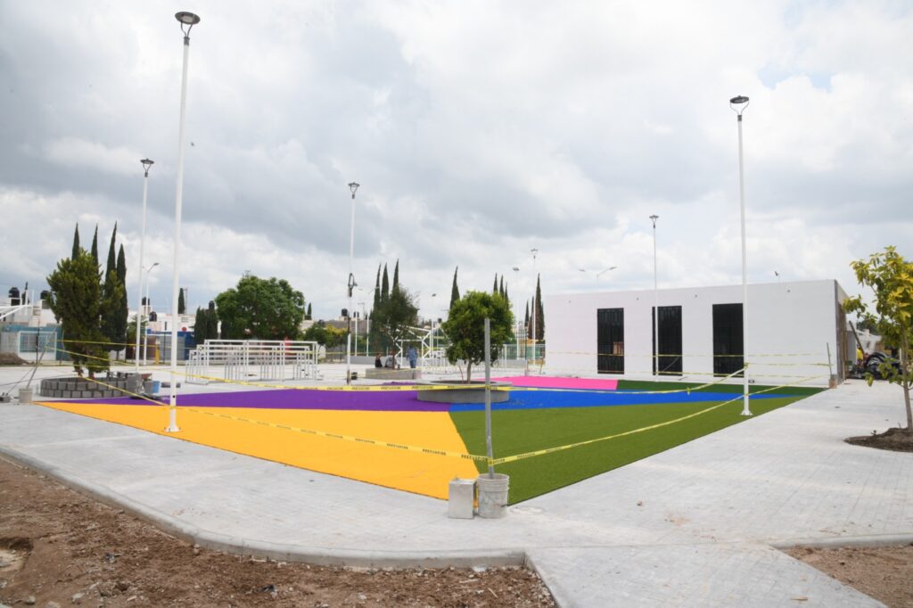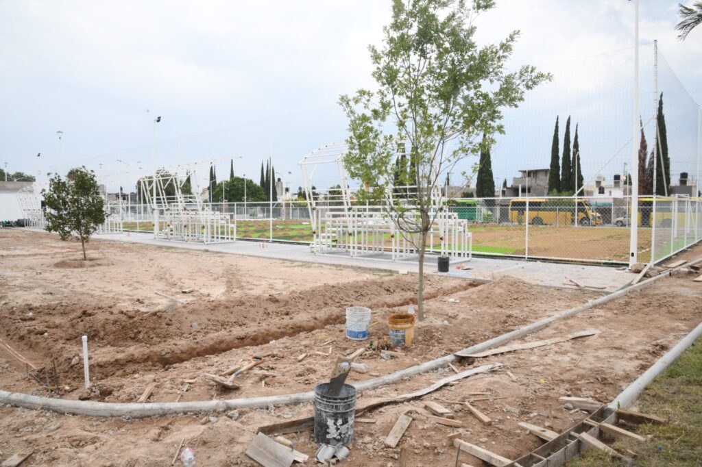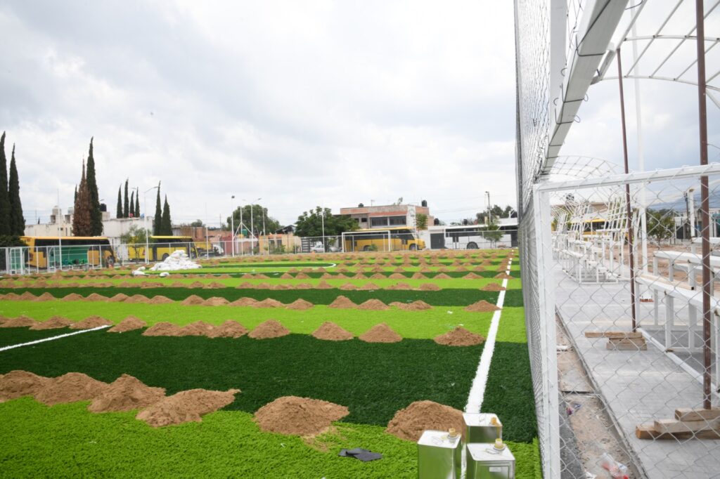 Actualmente, se trabaja en la colocación de pasto sintético en las zonas de juegos infantiles y cancha deportiva, así como en la culminación del módulo de usos múltiples que incluye una Purificadora gratuita, la cual operará el mismo día en que se inaugura, adelantó el Presidente municipal. Otros de los trabajos que se llevan a cabo es la instalación de butacas en la cancha deportiva y la creación de la trotapista.
