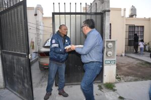 Juan Manuel Navarro Muñiz, Alcalde de Soledad de Graciano Sánchez, continuó este viernes con la entrega del programa alimentario emergente mediante la distribución de huevo como producto básico de alto valor nutricional, llevando este apoyo personalmente a los hogares de las colonias Nueve de Mayo, Primero de Mayo y Del Bosque, con una dinámica de cercanía con las familias y atención directa en territorio.