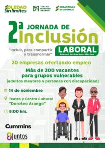 – El Ayuntamiento de Soledad convoca a la Segunda Jornada de Inclusión Laboral que se realizará el próximo 14 de noviembre en el Teatro y Centro Cultural “Doroteo Arango”.