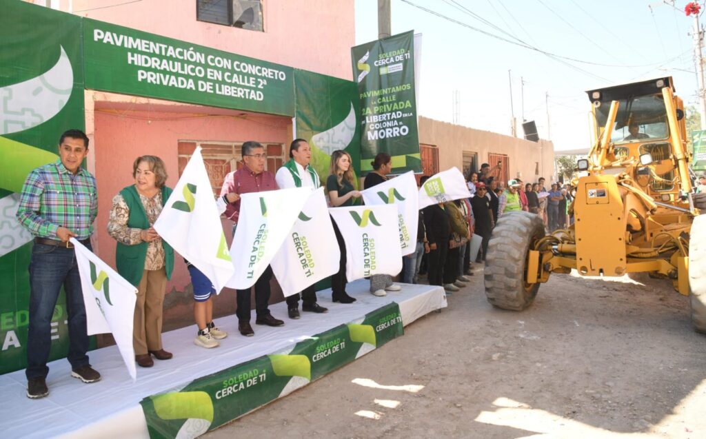 Impulsando el desarrollo integral de todas las familias de Soledad de Graciano Sánchez, a través de un plan de trabajo permanente en la realización de obras de pavimentación; el Alcalde, Juan Manuel Navarro Muñiz dio el banderazo de arranque de los trabajos con concreto hidráulico de la calle Segunda Privada de Libertad en la colonia El Morro, con una inversión mayor a los tres millones de pesos; acompañado por vecinos y vecinas, se anunció que esta obra beneficiará a más de cuatro mil personas, mejorando la movilidad y revitalizando la infraestructura vial del municipio.