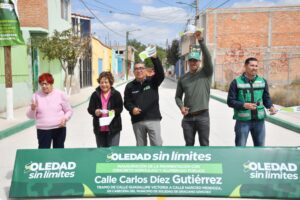 Juan Manuel Navarro Muñiz, Alcalde de Soledad de Graciano Sánchez, inauguró este jueves, la pavimentación con concreto hidráulico y el nuevo sistema de alumbrado público en la calle Carlos Díez Gutiérrez, en el tramo de Guadalupe Victoria a Narciso Mendoza, en la Cabecera Municipal, obra que representó una inversión de más de 2 millones de pesos, y beneficia a casi 3 mil habitantes, reafirmando su compromiso de atender de forma cercana las necesidades de las familias soledenses y mejorar la infraestructura urbana del municipio.