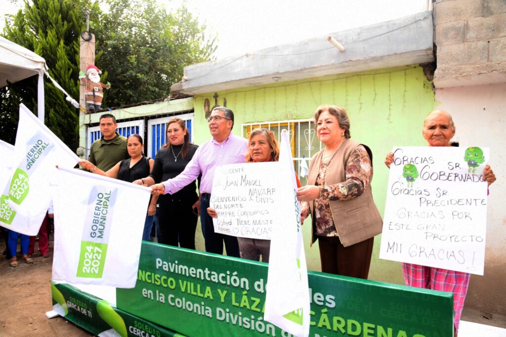 Juan Manuel Navarro Muñiz, Alcalde de Soledad de Graciano Sánchez, acompañado de decenas de familias, dio el banderazo de arranque a la obra de pavimentación de las calles Francisco Villa y Lázaro Cárdenas en la colonia División del Norte, con una inversión de casi 7 millones de pesos; durante su mensaje, el Alcalde anunció con firmeza que antes de que finalice su gestión, toda la colonia estará completamente pavimentada.