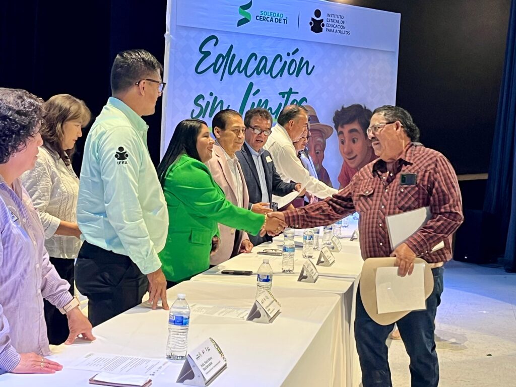 Con el impulso del Alcalde Juan Manuel Navarro Muñiz, el trabajo y la dedicación del Gobierno del Estado, Soledad de Graciano Sánchez se consolida como el municipio con menor rezago educativo en todo el estado, cualidad que se dio a conocer durante la entrega de certificados de primaria, secundaria y constancias de alfabetización por parte del Instituto Estatal de Educación para Adultos (IEEA),  ceremonia realizada este martes en el Teatro y Centro Cultural Municipal.