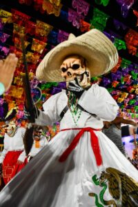 Este sábado, la comparsa originaria de Matlapa centró la atención de niños, niñas, jóvenes y adultos, que disfrutaron de un día más de cultura, tradición, olores y colores🎭. Antes, fueron testigos de singulares Altares de Muertos frente a la Presidencia, como parte del Concurso que se celebró, obteniendo el primer lugar el realizado por la Casa Cactus.