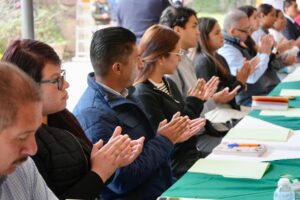 La Presidenta Concejal, Teresa Rivera Acevedo, resaltó la importancia de este encuentro como un acto de responsabilidad y compromiso para asegurar que las y los migrantes cuenten con instituciones solidarias que reflejen hermandad y cooperación y resaltó que el municipio de Villa de Pozos respaldará y acompañará con seriedad a cada uno de los paisanos que regresen en esta temporada.
