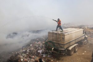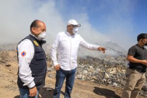 ALCALDE DE VILLA DE REYES SUPERVISA Y APOYA LABORES PARA CONTROLAR INCENDIO EN EL TIRADERO MUNICIPAL